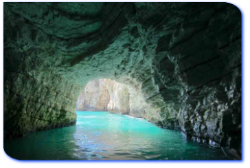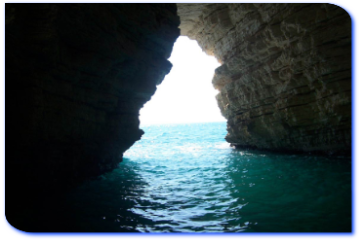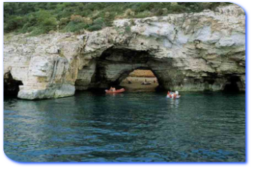 Poco piu' avani, la Grotta Sfondata Grande, due ingressi laterali introducono ad un corridoio che conduce in una grotta sfondata, sull'orlo esterno un gruppo di pini; sul fondo una lunga spiaggia dorata ed una piscina naturale meravigliosamente limpida.