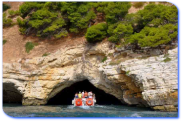 Nella stagione estiva vengono organizzati vari tour per visitare le grotte marine in motobarche. Veloci e sicure partono ogni giorno dal porto di Vieste per la visita alle grotte varie motobarche. Effettuano di solito due corse giornaliere alle ore 9,00 e alle ore 14,30 circa, percorrendo tutta la costa fino a Mattinata.